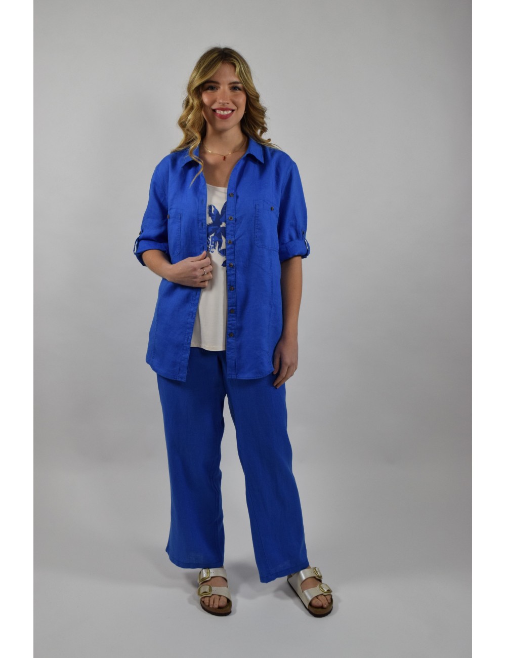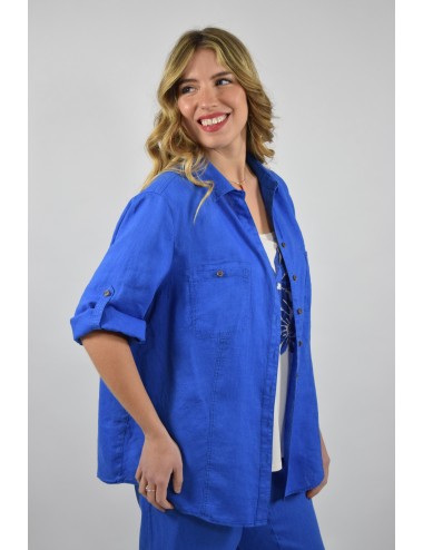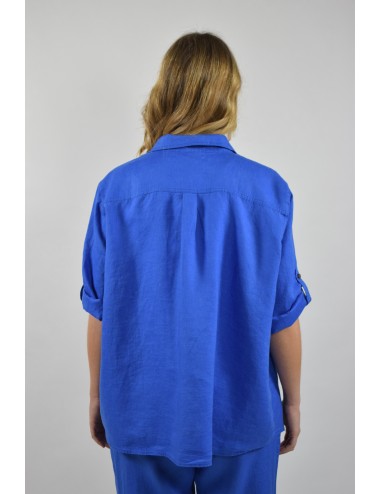Barbara Lebek - Camicia in lino con tasche appilcate bluette