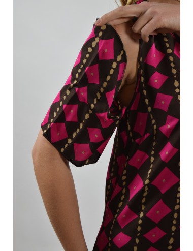 Abito lungo in raso di viscosa con stampa all over. Fresco e versatile, linea morbida, scollo tondo. Puoi indossarlo anche con le maniche corte in dotazione.