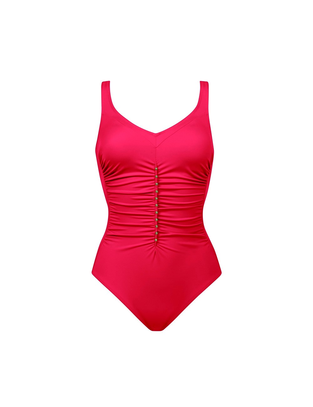 Costume da bagno intero con scollo a cuore realizzato con una lycra che modella leggermente la figura donando un effetto snellente grazie anche ad un leggera arricciatura del tessuto.