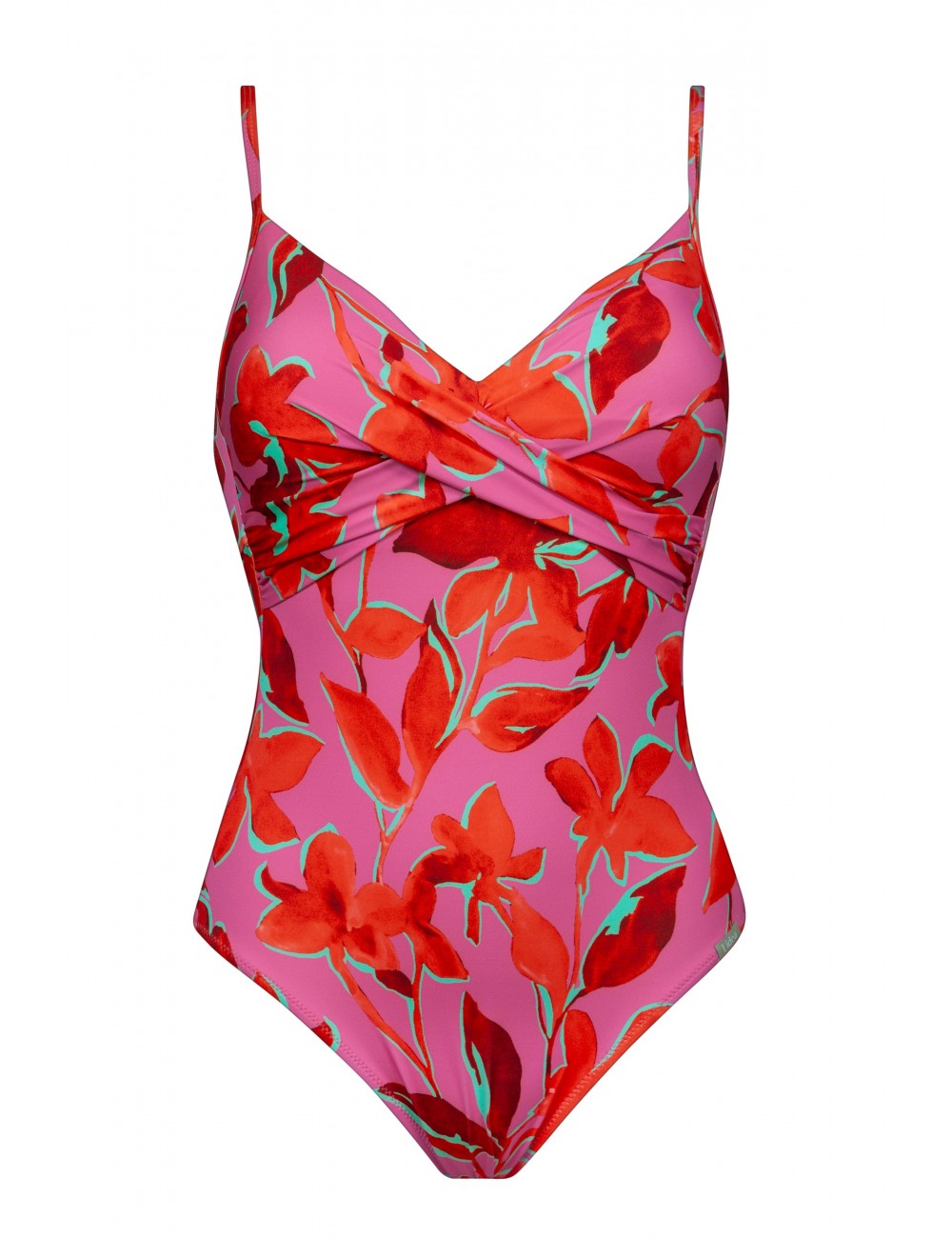 Costume da bagno intero con scollo a cuore e drappeggio incrociato sottoseno.